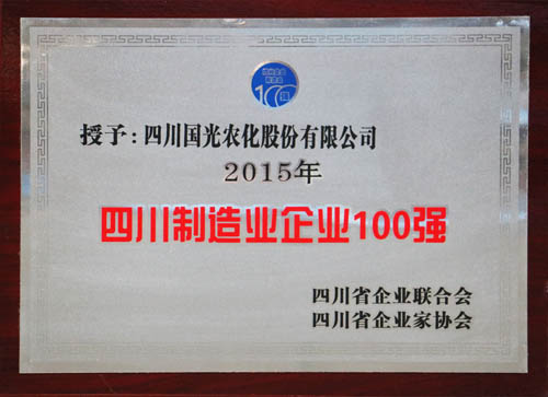 2015年11月26日下午,四川省企業(yè)聯(lián)合會、四川省企業(yè)家協(xié)會發(fā)布了《2015四川企業(yè)發(fā)展報告》,我公司再次榮獲四川制造業(yè)百強(qiáng)企業(yè)。四川國光農(nóng)資有限公司榮獲四川服務(wù)業(yè)百強(qiáng)企業(yè)。