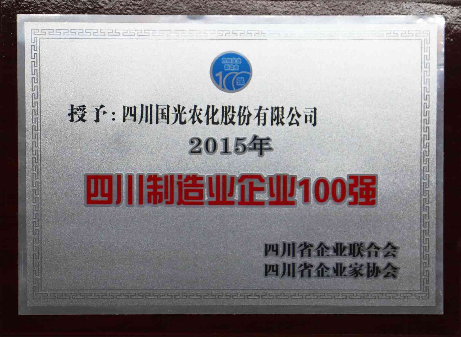 2016年1月15日,由四川省企業(yè)聯(lián)合會(huì)/企業(yè)家協(xié)會(huì)召開(kāi)的第八屆三次理事會(huì)全體大會(huì)暨2016年企業(yè)家年會(huì)上國(guó)光公司及子公司分別榮獲2015年《四川制造業(yè)企業(yè)100強(qiáng)》、《四川服務(wù)業(yè)企業(yè)100強(qiáng)》稱號(hào)。